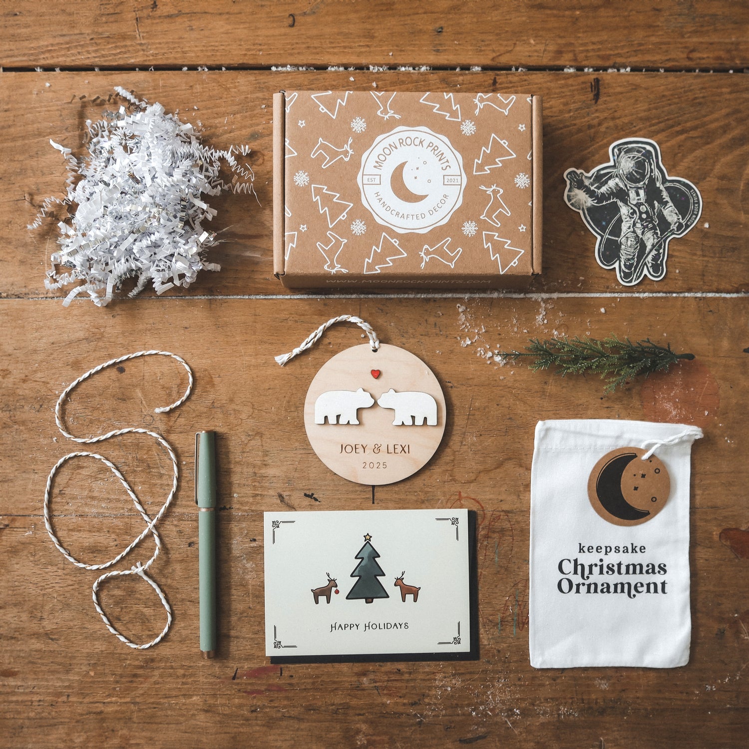 Handmade: Ornaments are designed, engraved, painted, sanded and carefully packaged by Courtney + Brent