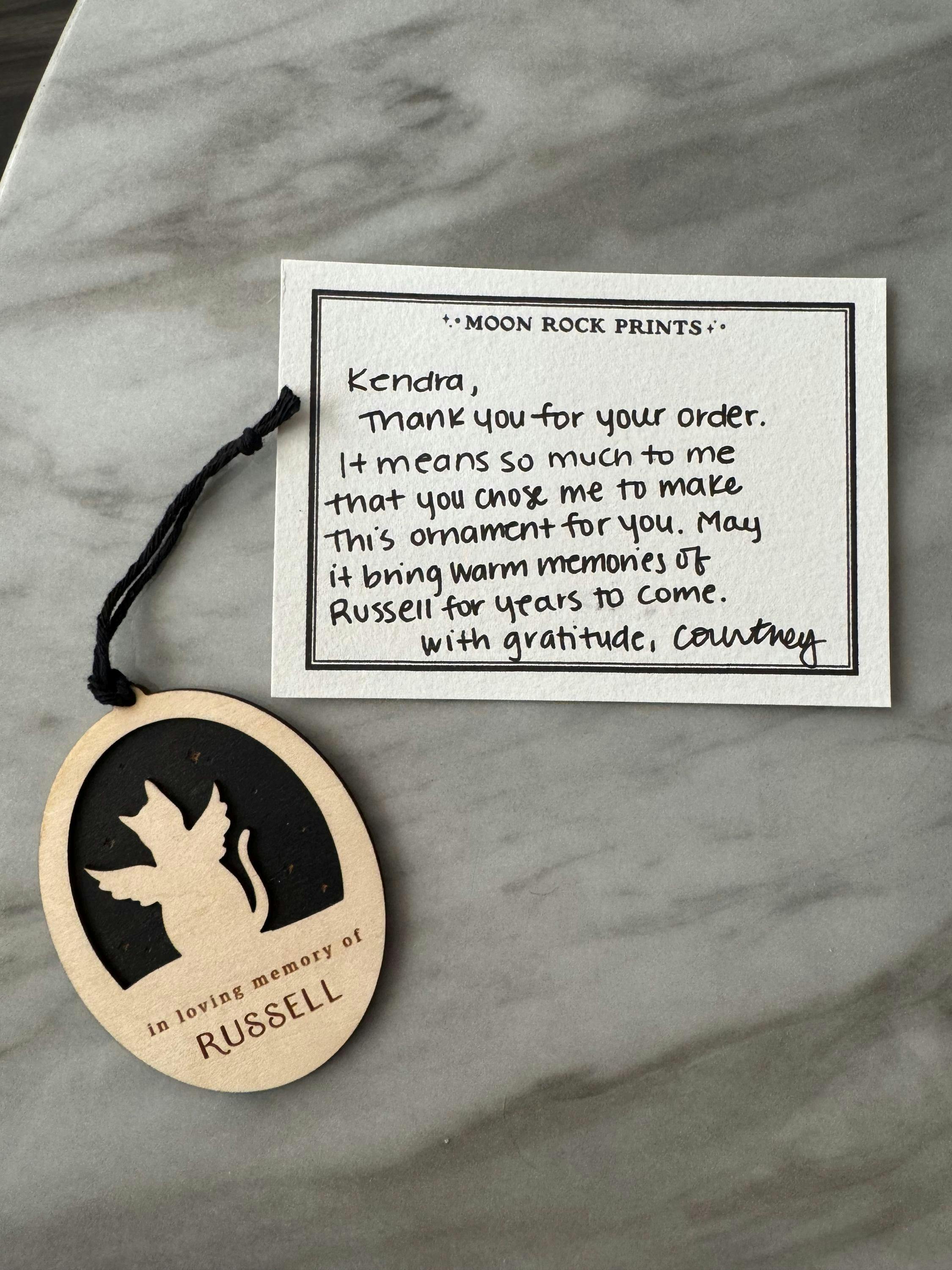 • Personalized remembrance ornament for a beloved feline.