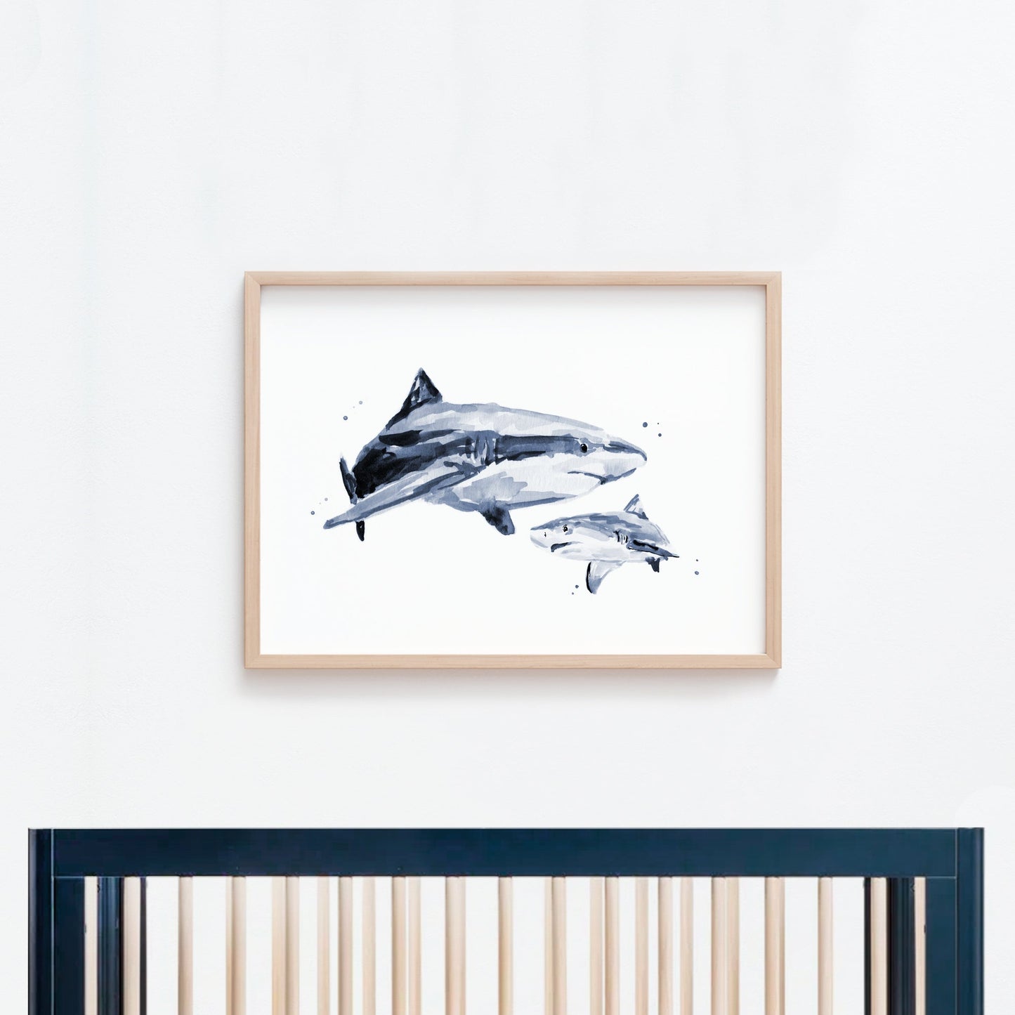 Bring the ocean to life your little one's under the sea nursery with our shark and baby shark watercolor print. Display it as decor at a nautical themed baby shower to bring a unique and whimsical touch to your celebration.